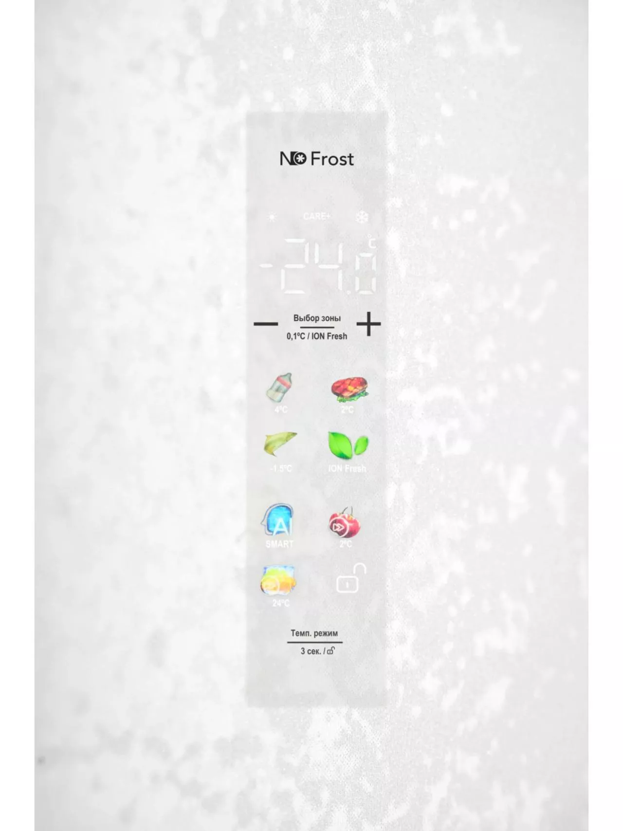 Режим SMART сохраняет свежесть продуктов, используя оптимальные показатели для эффективного энергопотребления: 5°С – в холодильном отделении, -18°С – в морозильной камере и 4°С – в зоне с настраиваемой температурой CARE+SPACE.