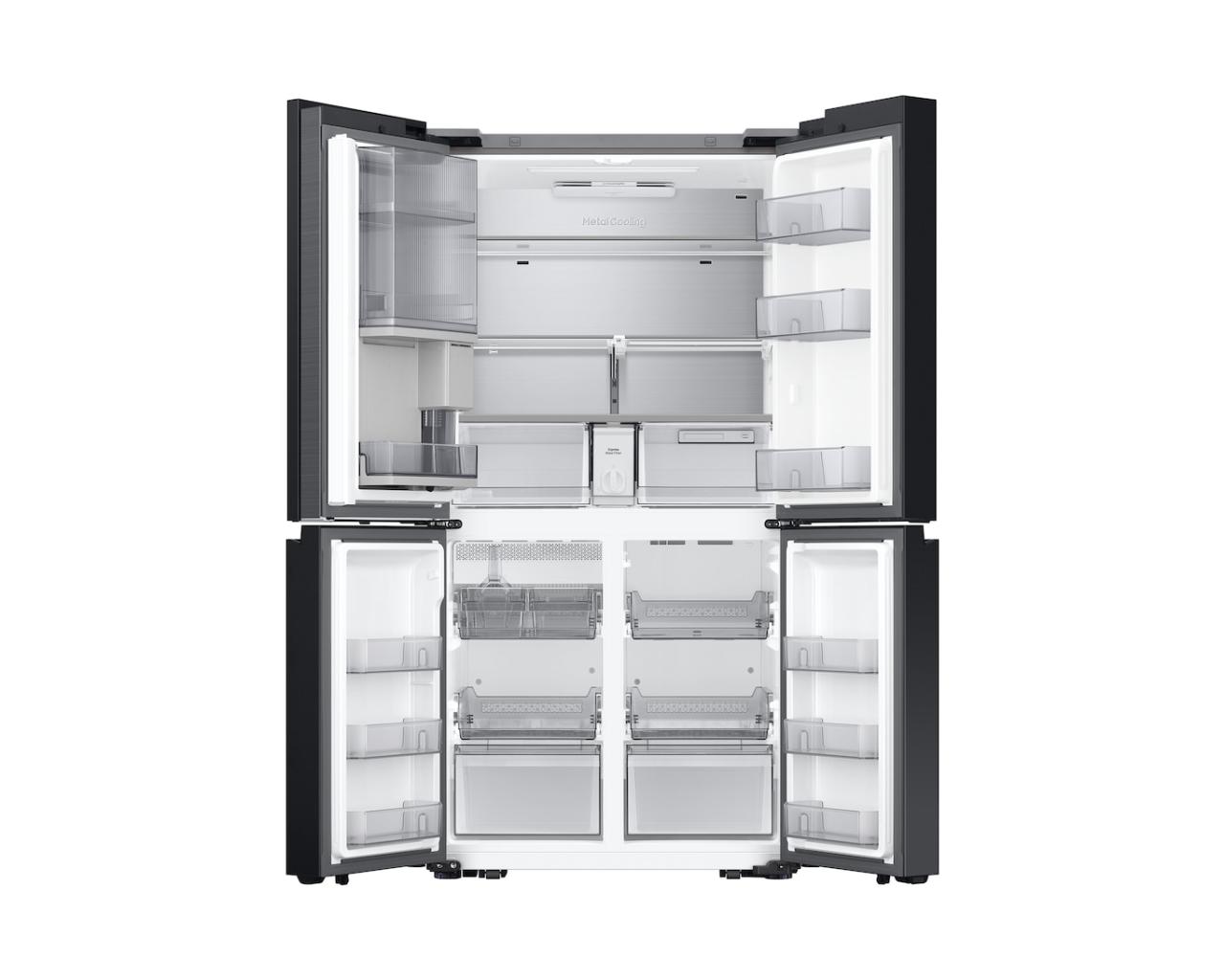 Холодильник Samsung RF9000DC — это вместительное и технологичное решение для большой семьи, выполненное в формате French Door (четыре двери). Общий объем 676 литров, разделенный на три независимые камеры, позволяет организовать хранение продуктов с максимальным комфортом. Модель оснащена инверторным компрессором, полной системой No Frost в обеих камерах, встроенным ледогенератором и интеллектуальным управлением через Wi-Fi. Стильный белый корпус со стеклянными дверями и внутренними ручками гармонично впишется в современный интерьер просторной кухни.
