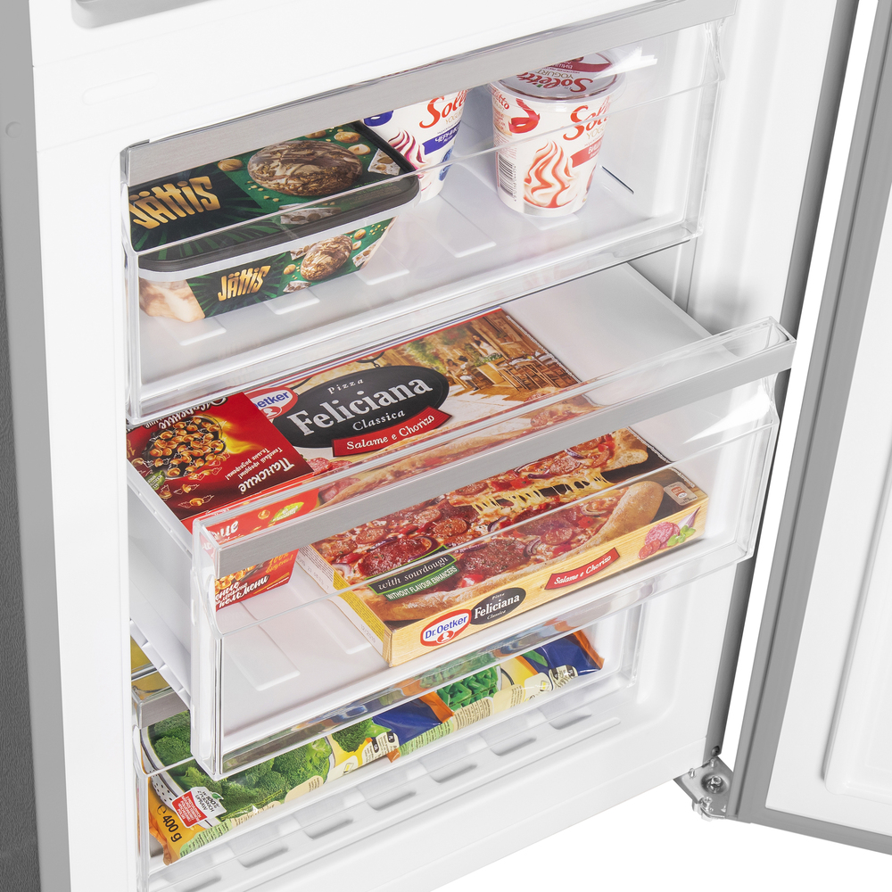 Система динамического охлаждения с вентилятором равномерно распределяет холодный воздух по всей высоте, поэтому продукты на любой полке сохраняют свежесть дольше. Антибактериальная обработка внутренних поверхностей поддерживает санитарную безопасность и облегчает уход за техникой.