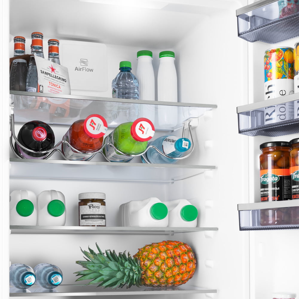 Винная полка - разработана для максимального удобства хранения в холодильнике продуктов и напитков: моделируйте пространство так, как необходимо.