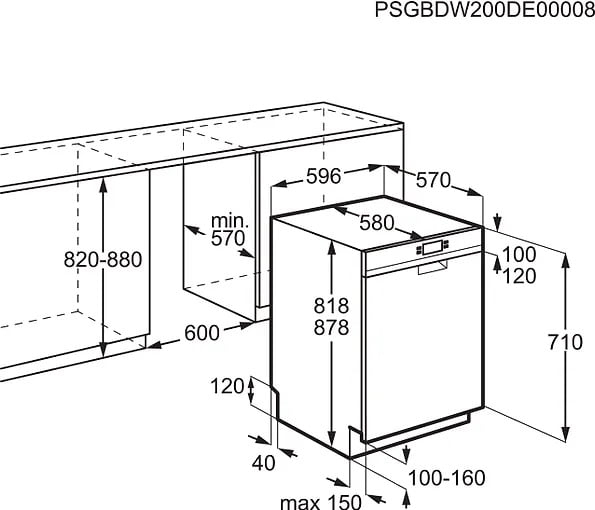 Размеры K x L x S (мм): 818-878 x 596 x 590