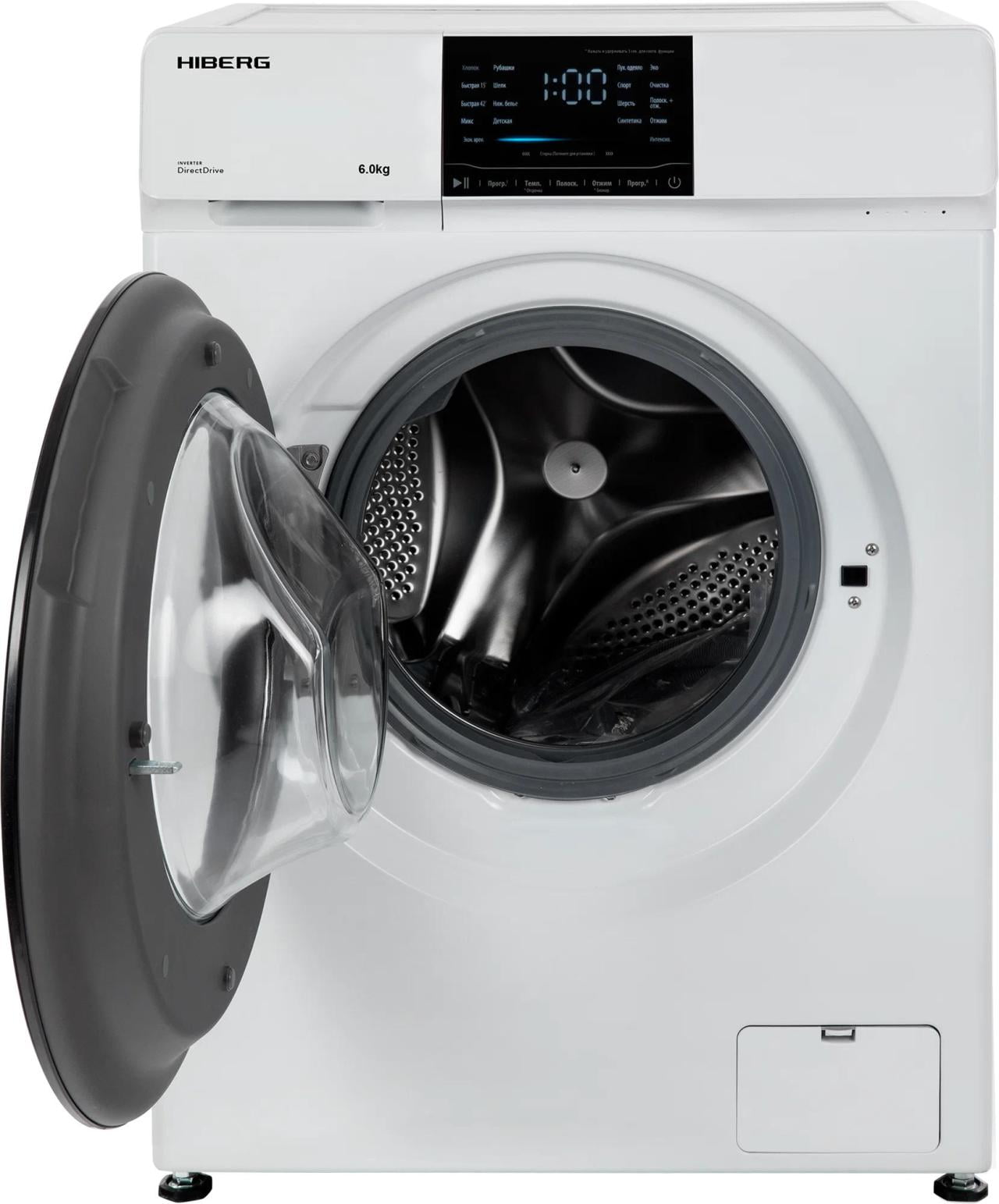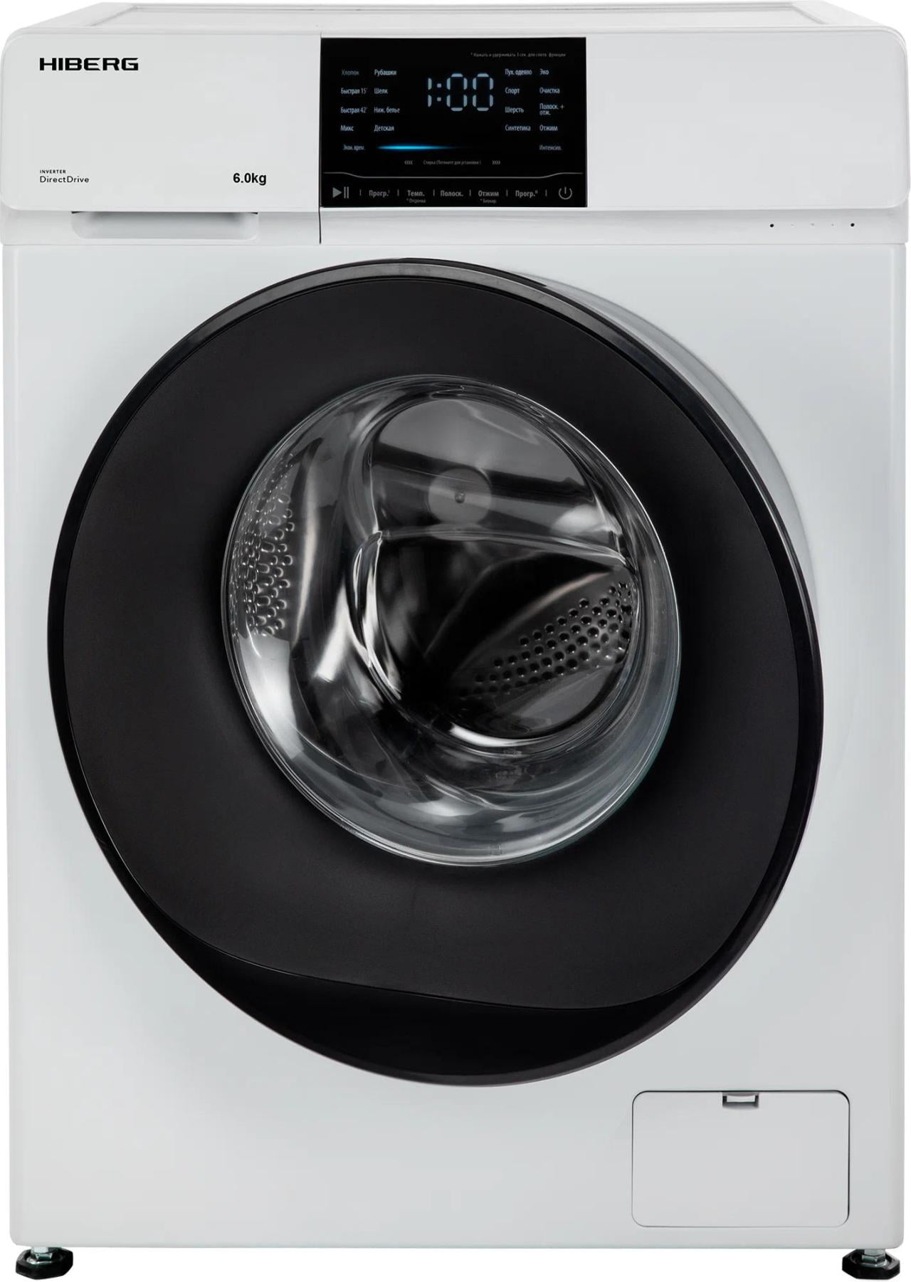 Отдельностоящая стиральная машина HIBERG i-DDQ6 - 612 с инверторным мотором и системой прямого привода отстирывает до 6 кг сухого белья за 1 цикл.